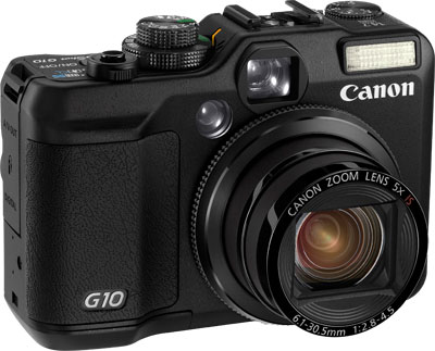 CANON Power Shot G10, un compact expert avec viseur optique et écran, capteur 14,7 MPix, zoom 5x 28-140 de 2.8 à 4.5, avec de nombreuses fonctions dont la vidéo en 640x480 QT, MOV et H254, la reconnaissance des visages, supportant plusieurs types de mémoires comme SD, SDHC, MMC, MMCPlus et HC MMCPlus.