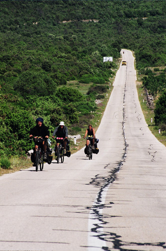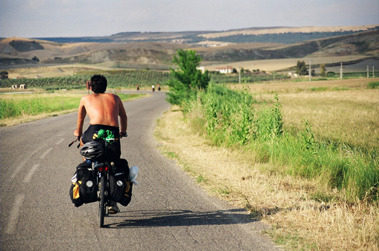 Le voyage à vélo? Premièrement, c’est un défi avec soi-même. Dur de réaliser qu’on va pouvoir faire 2500 kilomètres le cul sur une selle. Pourtant, une fois lancé, on accepte vite cette idée. Deuxièmement, on découvre les petits inconvénients du vélo (l’effort et les crevaisons) mais c’est sans compter ses avantages indéniables, notamment la dimension sportive du voyage et la vitesse réduite. On apprécie mieux le paysage à 25km/h. On l’observe en détails, on ne loupe rien ou presque. On peut s’arrêter à tous moments, éviter les embouteillages, emprunter les pistes, déboucher sur une crique perdue, se perdre dans la nature et tout de même réaliser des étapes quotidiennes de 50 à 100 kilomètres. On avance à un nouveau rythme, le sien.