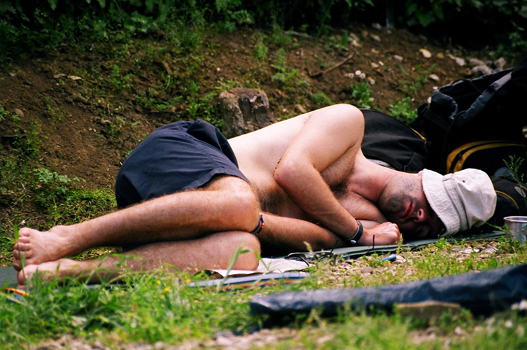 Je me souviens des tours de stade au collège et au lycée, des 50 fastidieuses minutes qu’il fallait vaincre pour avoir tout juste 10/20. Je me souviens du 100 mètres nage libre du baccalauréat, à bout de souffle, un calvaire. Je me souviens des footballs du dimanche, des accélérations, de l’adrénaline, des actions menées sans respiration jusqu’à la passe décisive. Chaque fois au bord de l’étouffement. A vélo, l’effort physique n’est pas aussi excessif. A contraire il est mesuré, soutenu et étalé dans le temps. Il faut s’économiser, garder des jambes pour l’après-midi. Et pourtant, durant la soirée tout effort devient surhumain : aller chercher dans la tente mon couteau, les pâtes ou le thon. Combien de fois me suis-je relevé inutilement ce soir ? La fatigue m’impose de penser à tout. Peu à peu je m’organise. Je me sens en bonne forme! Une sensation de fatigue saine, de qualité.