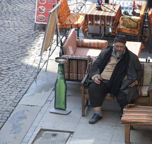 Fin Février début Mars, il ne faisait pas chaud. Comme tous les routards nous avons logé dans le quartier de Sultanamet, dans un petit hôtel que je recommande. Le Star Hôtel. Très propres, très gentils, tarifs raisonnables et raisonnablement négociables. Le soir nous allions traîner à l’Aria bar en bas de la rue de l’hôtel ou nous rencontrions des gens du monde entier dans une ambiance musico narguilé.