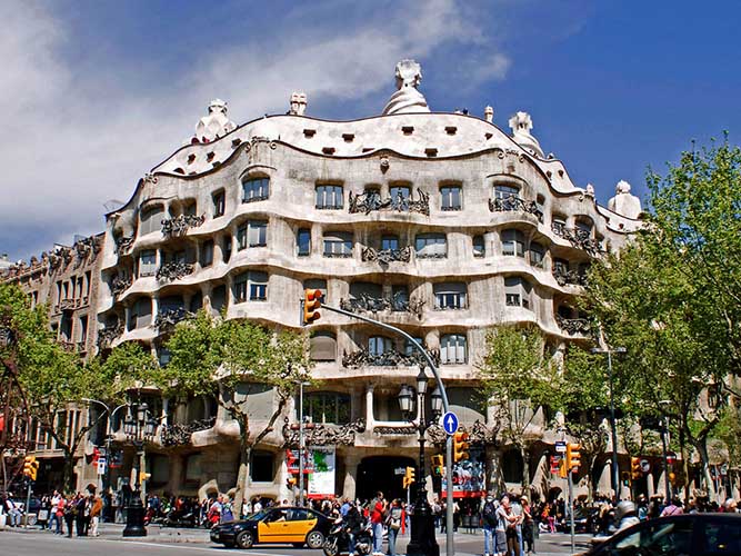 Passage de Gracia, un des quartiers les plus courus de la ville. La promenade moderniste, longue d’1 km et perpendiculaire à la mer, permet d’admirer deux chefs d’œuvre de l’architecture de Gaudi : la Casa Batlló et la Pedrera.