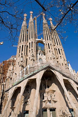 Quartier de l’Eixample. Du haut de ses 115 mètres, la Sagrada Familia nous scrute, l’air fier. Le Temple expiatoire de la Sagrada Familia est une œuvre initiée par l’architecte Gaudi en 1882. Inachevée, elle a été successivement reprise par des architectes de différentes nationalités.