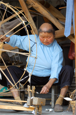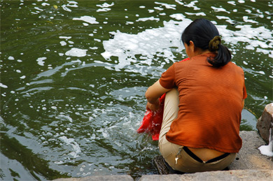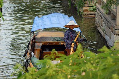 Les jonques, menées par des jeunes femmes en costume traditionnel, sillonnaient les canaux de la ville ancienne de Zouzhuang. Malgré le poids du bateau et les manœuvres difficiles, leurs gestes étaient sûrs et fiers. Tout près de là, leurs mères, leurs sœurs, leurs cousines lavaient le linge familial dans les eaux sales de la rivière.