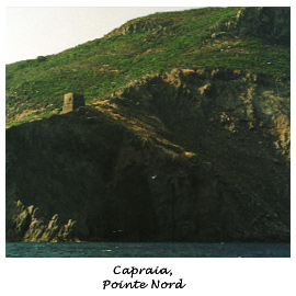On repart, allez hop ! Le vent est super dans le coin, petite brise, mer plate…le pied… jusqu'à ce qu'on arrive vers Porto Ferraio (pas loin de Piombio) où là c'est un foutoir pas croyable… des bateaux à moteur dans tous les sens qui nous rasent de près et qui nous font des vagues infernales !!..L'horreur ! On va se poser dans une petite anse dans la baie de Porto Ferraio, on mange et on baigne les gamins depuis le bateau (avec les gilets, BIEN SUR !). Du coup après avoir rencontré cette cohue, on décide de faire l'impasse sur Porto Ferraio et de tracer direct un peu plus loin, en plus comme ça, ça nous rapprochera de Capraia, l'étape de demain !