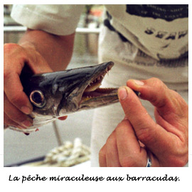 Tout à coup, ça nous fait "tilt", on se dit "et pourquoi pas nous", non… pas nager à la surface mais pêcher ses fameux barracudas ! Mais oui, mais oui s'ils en sont capables, nous aussi ! C'est bientôt la cohue sur les quais, tout le monde se rue pour pêcher les poissons !