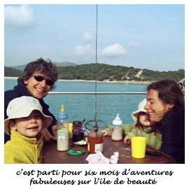 Nuit calme, sans un souffre, un réveil serein avec plein de soleil : voilà ça c'est la Corse comme dans les pubs ! Petit déjeuner plein d'entrain sur le pont, avec vue sur les eaux transparentes, bleues turquoises (oui, on sait, on sait!) et la plage… Etc, etc. (C'est vrai que ça peut être énervant pour certains lecteurs…). M'enfin quand même c'est génial !