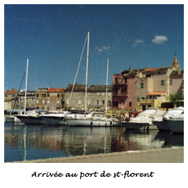 Dans le bus, Xavier me dit "on va pouvoir se faire une p'tit tour peinard dans la baie de St-Florent"… ouaih ! ouaih ! En guise de petit tour on se paye un méga coup de vent dans le port " Le Libeccio", si bien que non seulement on n'a pas pu sortir mais en plus dans mon cas, je n'ai même pas réussi à faire la sieste tellement les rafales étaient fortes dans le port ! Quelle arrivée ! Et le pire c'est que ça a duré trois jours avec en plus quelques gouttes de pluie histoire d'assaisonner tout ça !! Screugneugneu et la plage alors . Moi qu'avait emmené 4 ou 5 maillots de bain, je reste sans voix devant le choix !!