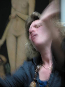 Là s'arrête mon commentaire. Je n'ai pas d'avis sur le sujet que je ne comprends pas. Femme battue ? cadrage de danseuse ? ou de comédienne ? rencontre explosive avec une baie vitrée en cherchant la sortie du musée ? crise delirium psycho. d'identité féminine à la ménopause ? ...