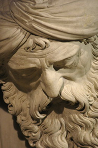 La sculpture. Regardez avec attention les dégâts causés par une multiplication des sources, non maîtrisée. C'est navrant. L'effort de cadrage - avorté - ne rattrape même pas. L'angle en bas sur la gauche est un aveu d'inaboutissement du cadrage. D'autant que l'ombre portée est d'une dureté particulièrement désagréable. Histoire de pousser encore le bouchon, remarquez comme l'ombre portée de son nez confère au Zeus une langue de diablotin ridicule et une attitude de pervers pépère. ;)