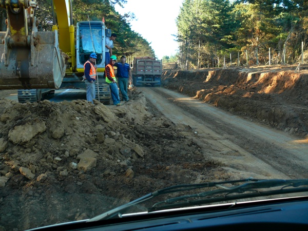 Heureusement la route était en construction et la pelleteuse qui était là a fait un passage que pour nous ! C’était la seule solution pour passer et derrière nous, il y avait la queue des camions qui eux pouvaient passer facilement.
