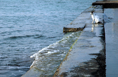 Un matou matinal observe la mer, il ne me jette pas un seul regard, absorbé par son monde. Je goûte avec lui la beauté simple d’être en vie, ici, au bord de la mer. Je jouis simplement de ce moment pour ce qu’il est.