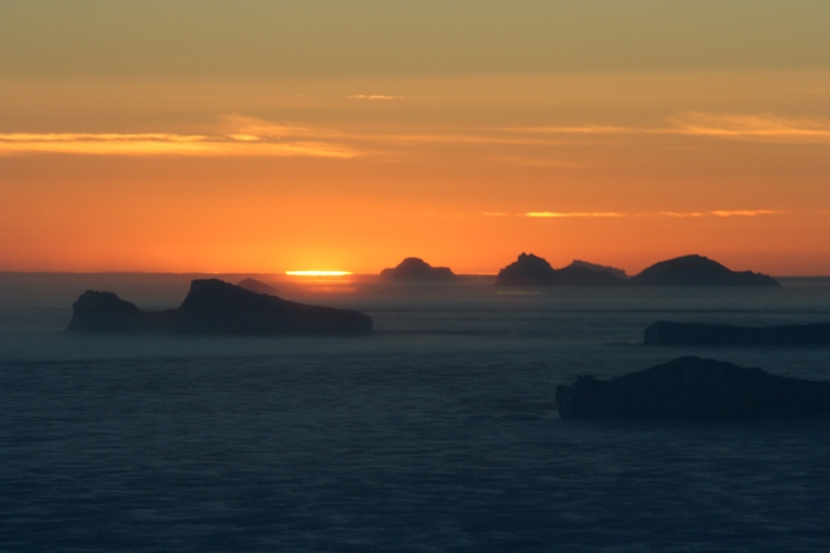 Fin octobre signe le début du bref austral, le soleil reprend peu à peu de la hauteur dans le ciel, offrant aux paysages hivernaux une toute autre coloration. L’ocre, le rouge, le jaune et le rose font leur apparition. Sous l’effet de l’augmentation des températures, du vent, des courants et des marées, la banquise se disloque par plaques qui partent à la dérive vers le large. Les phoques sortent alors de l’eau pour donner à leur tour la vie. L’ile se repeuple de milliers d’oiseaux alors que les Empereurs eux, s’en retournent en mer leur tache accomplie. La base est de nouveau accessible par la mer, un point rouge en acier pointe son nez à l’horizon, c’est le navire de relève, il est temps de rentrer. Adieu l’hiver, adieu l’Antarctique. Souviens-toi de la nuit polaire…