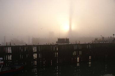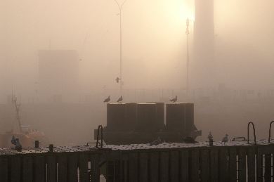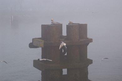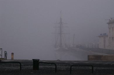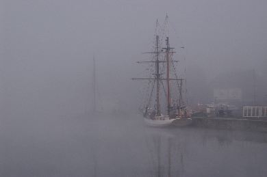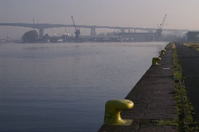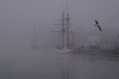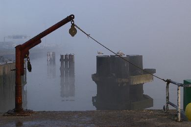 J'ai d'abord vu des bateaux fantômes sur le port de Caen, l'Orne qui s'éveillait au soleil rasant du matin, puis j'ai retrouvé soleil et brume sur le port de Ouistreham avec l'écluse et le phare.