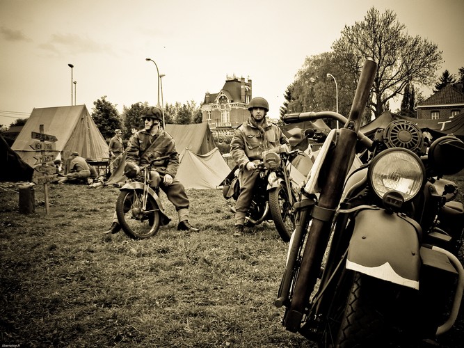 Ces photos sont extraites d'une série réalisée à Sainghin-en-Mélantois (59) lors d'une commémoration de la libération de la seconde guerre mondiale organisée en mai 2009 par le jeep club des Flandres en collaboration avec 4 autres associations sans qui rien ne serait possible. Tous les ans ces associations organisent un camps que les gens peuvent visiter et un spectacle son et lumière. En mai 2011 le spectacle aura lieu à Lesquin (59).