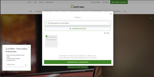 WhiteWall est un site sur lequel vous pouvez éditer votre photo préférée et l’obtenir in fine dans un beau cadre choisi par vos soins.